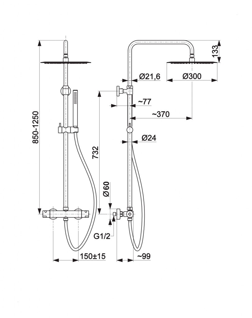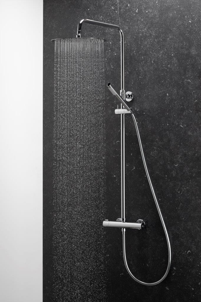 Ako celok má sprchový set s batériou výšku 125 cm , čo je ideálna veľkosť aj do tej najmenšej kúpeľne.