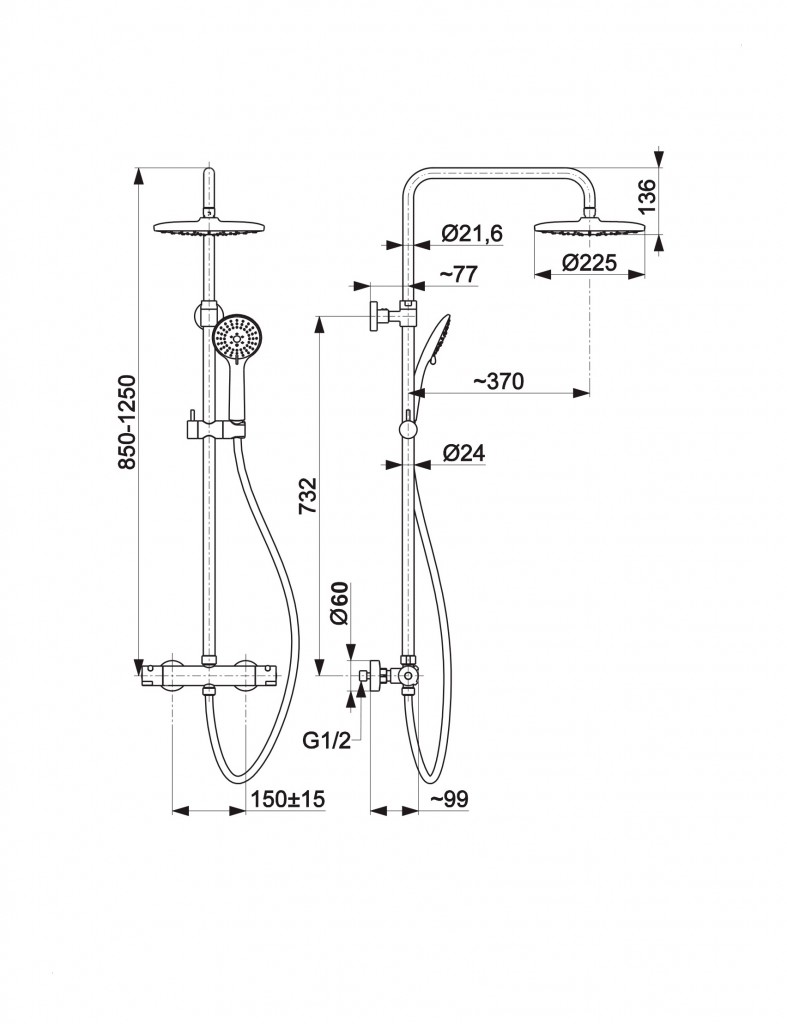 Ako celok má sprchový set s batériou výšku 125 cm , čo je ideálna veľkosť aj do tej najmenšej kúpeľne.