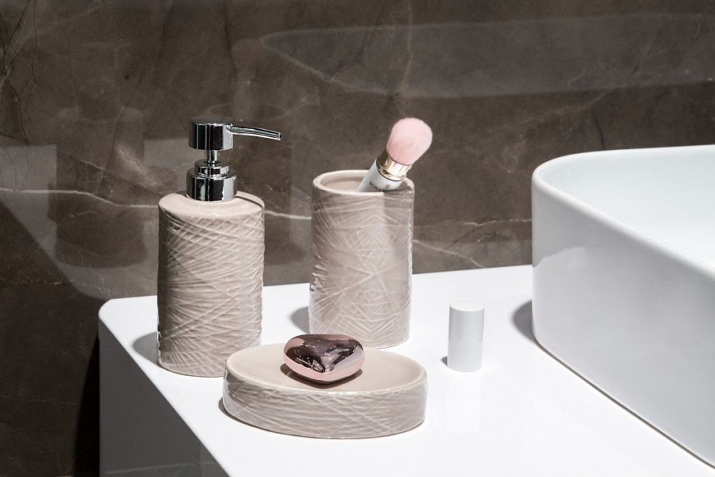 Miska na mydlo zo série Fadeno. Mydelnička bude vďaka svojim univerzálnym farbám módnym akcentom, ktorý sa bude hodiť do kúpeľní mnohých štýlov.