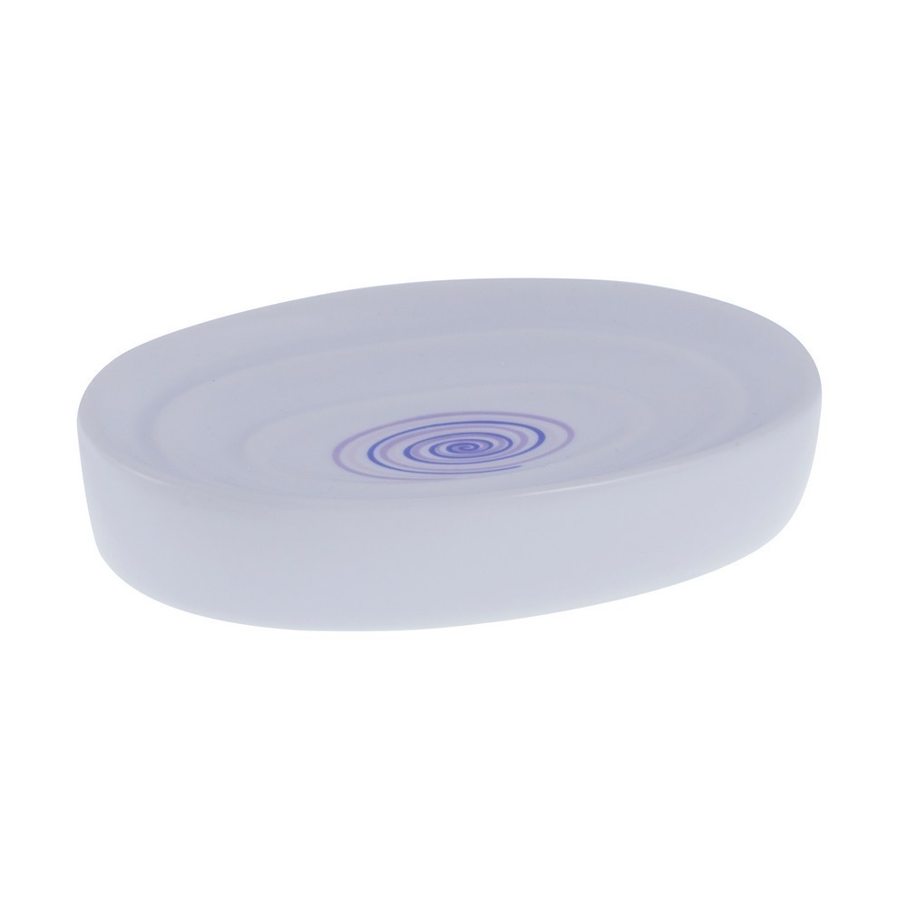 Miska na mydlo radu FUMI. Uprostred jeho hornej časti je ozdobná dvojitá fialová špirála.