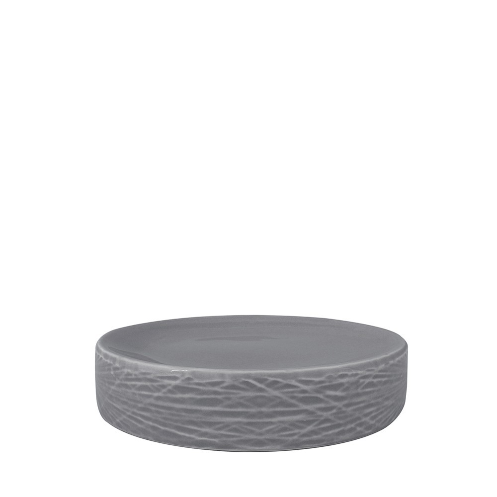 Oválna miska na mydlo Grigio je vyrobená z kameniny, vysoko odolnej keramiky. Mydelnička má hladký povrch a ľahko sa čistí, stačí ju opláchnuť vodou. Celá kúpeľňová zostava Grigio je šedej farby, má lesklý povrch a jemnú pletenú textúru.