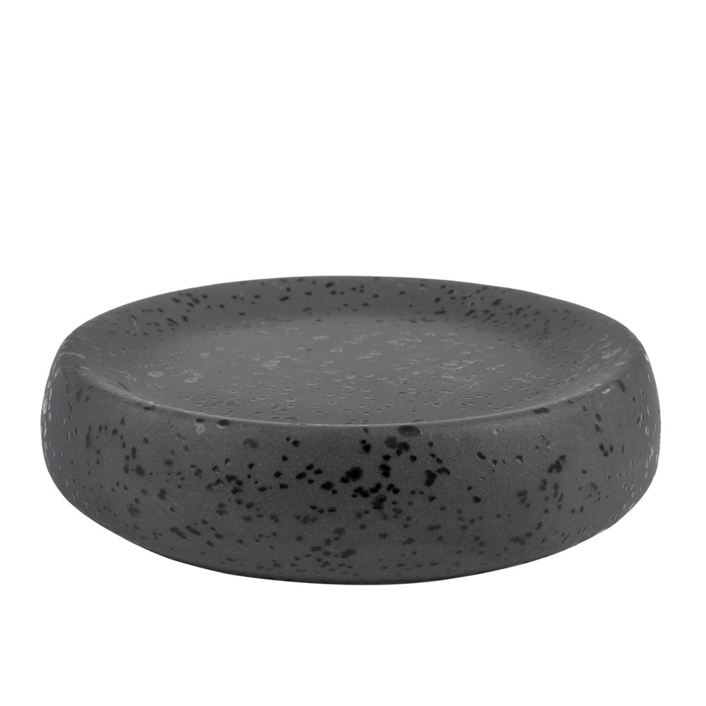 Okrúhla miska na mydlo zo série Hades. Je vyrobená z tmavej, matnej antracitovej kameniny. Má nepravidelné, škvrnité čierne škvrny, ktoré mu dodávajú jedinečný charakter.
