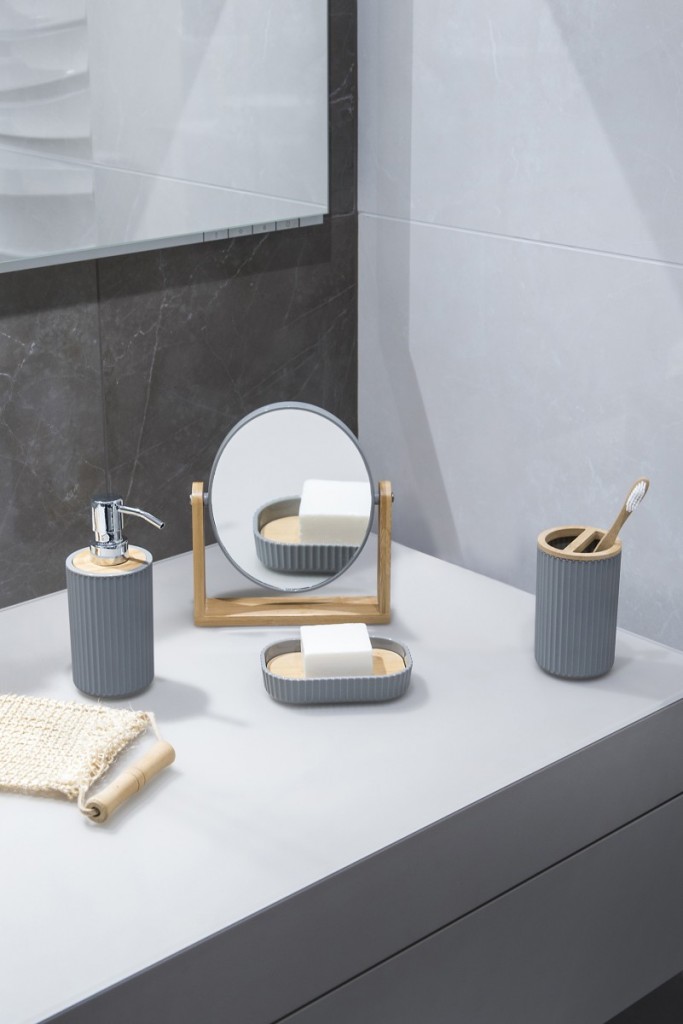 Mydelnička na mydlo zo série RAYON. Mydelnička je dostupná v jaseňovej farbe s matným povrchom. Má textúru vo forme reliéfnych zvislých pruhov. Mydelnička má vo vnútri módny doplnok v podobe prírodného bambusu.