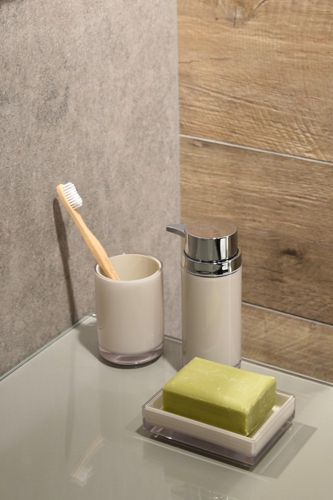 Mydelnička radu REA je návrhom pre ľudí, ktorí oceňujú moderný dizajn. Farba béžová.