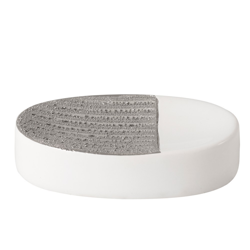 Keramická miska na mydlo v striebornej a bielej farbe.
