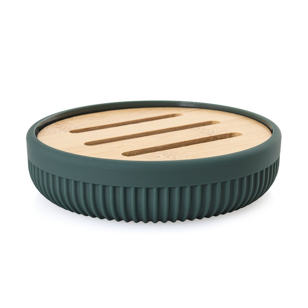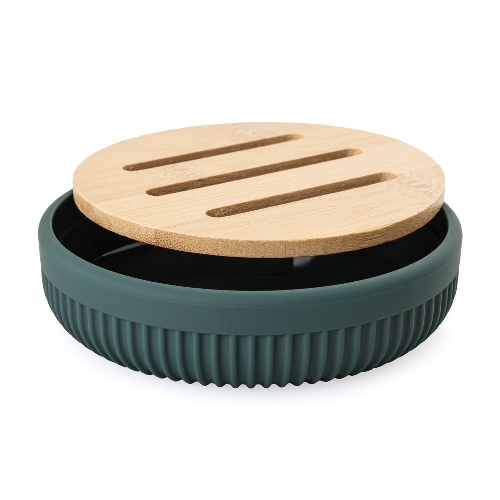 Mydelnička zo série Frida zaujme krásnym odtieňom fľaškovo zelenej. Vyrobené z elegantného, matného plastu, dodáva mu osobitý charakter. Vyznačuje sa funkčnou odkvapkávacou miskou, ktorá chráni mydlo pred zmäkčením a nadmerným opotrebovaním. Vďaka možnosti vybrať odkvapkávaciu misku je jej udržiavanie v čistote bez námahy jednoduché. Odkvapkávač je navyše vyrobený z prírodného bambusového dreva, čo mydlovke dodáva extra prirodzené kúzlo.