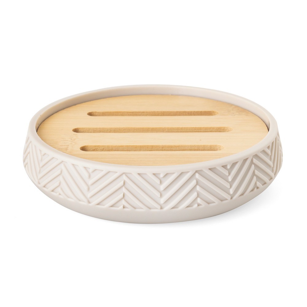Mydelnička Hermosa je elegantným a praktickým doplnkom do každej kúpeľne. Je vyrobená z vysoko kvalitných materiálov v béžovej farbe a vyznačuje sa jedinečným vzorom rybej kosti, ktorý mu dodáva moderný a štýlový vzhľad. Sada obsahuje prírodnú bambusovú odkvapkávaciu misku, ktorá účinne odvádza prebytočnú vodu, udržuje mydlo v dobrom stave a predlžuje jeho životnosť. Pevná konštrukcia mydlenky zaisťuje odolnosť a stabilitu, zatiaľ čo minimalistický dizajn umožňuje bezproblémové splynutie s ostatnými kúpeľňovými doplnkami a dodáva eleganciu rôznym štýlom interiéru. Mydelnička Hermosa je vynikajúcou kombináciou funkčnosti a estetiky.