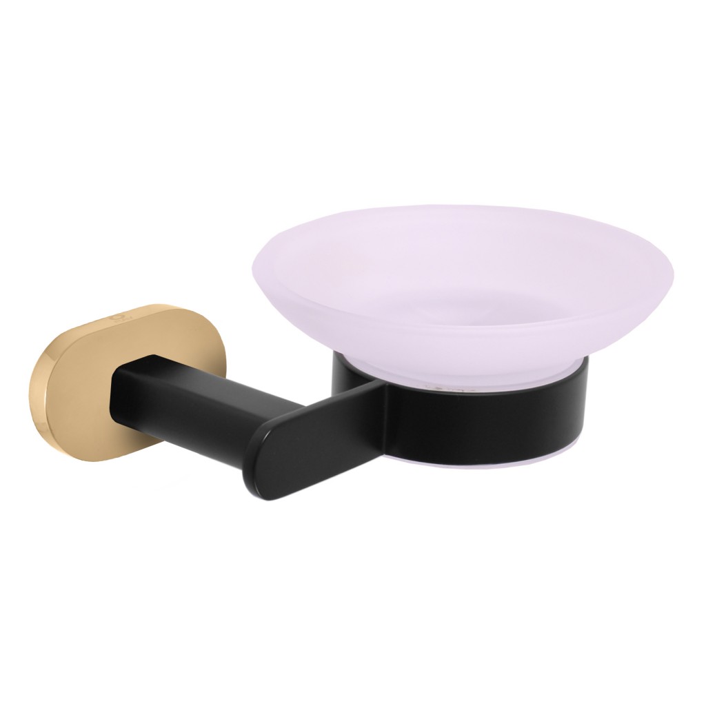 Elegantná čiernozlatá mydlenka je obľúbeným funkčným prvkom ku každému umývadlu. Miska mydlenky z pieskovaného skla zaisťuje ľahkú umývateľnosť.