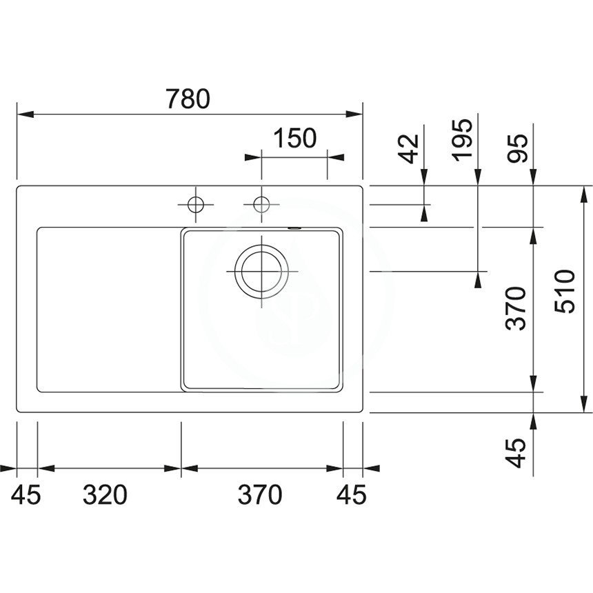 Drez má už dva otvory z výroby. V dôsledku výrobného procesu majú rozmery keramických drezov väcšie toleranciu a môžu sa líšiť od rozmerov uvedených v technických výkresoch +/- 1%.