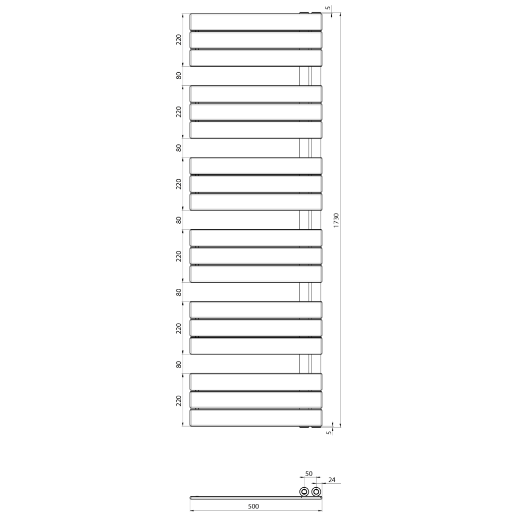 Kúrenie s bočným pripojenímKombinované pripojenie umožňuje ohrievať teleso ako centrálnym systémom vykurovania, tak využiť pre samostatný ohrev elektrickú vykurovaciu tyč mimo vykurovacej sezóny. Vykurovaciu tyč odporúčame s rovnakým alebo podobným výkonom podľa špecifikácie daného vykurovacieho telesa.