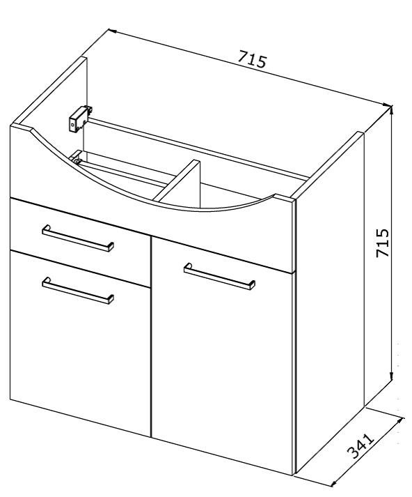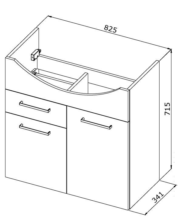 - spodná skrinka: 82,5 × 34,1 × 71,5 cm