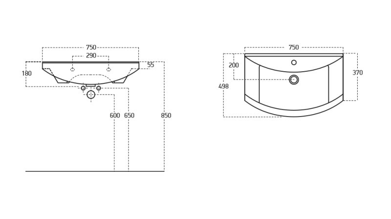 - keramické umývadlo: 75 × 48,5 × 19 cm