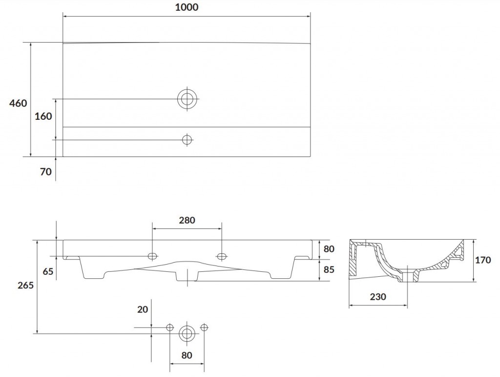 Súčasťou umývadla nie je batéria ani výpusť.