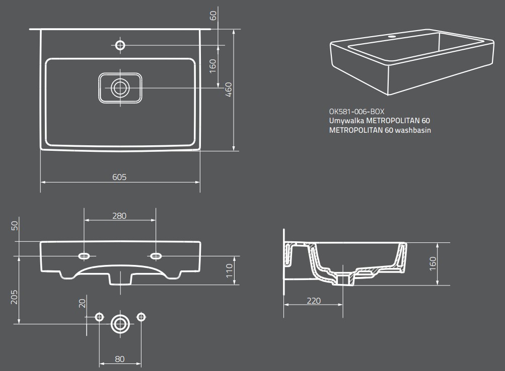 NÁBYTKOVÉ UMYVADLO METROPOLITAN SYMETRICAL 60 (OK581-006-BOX)