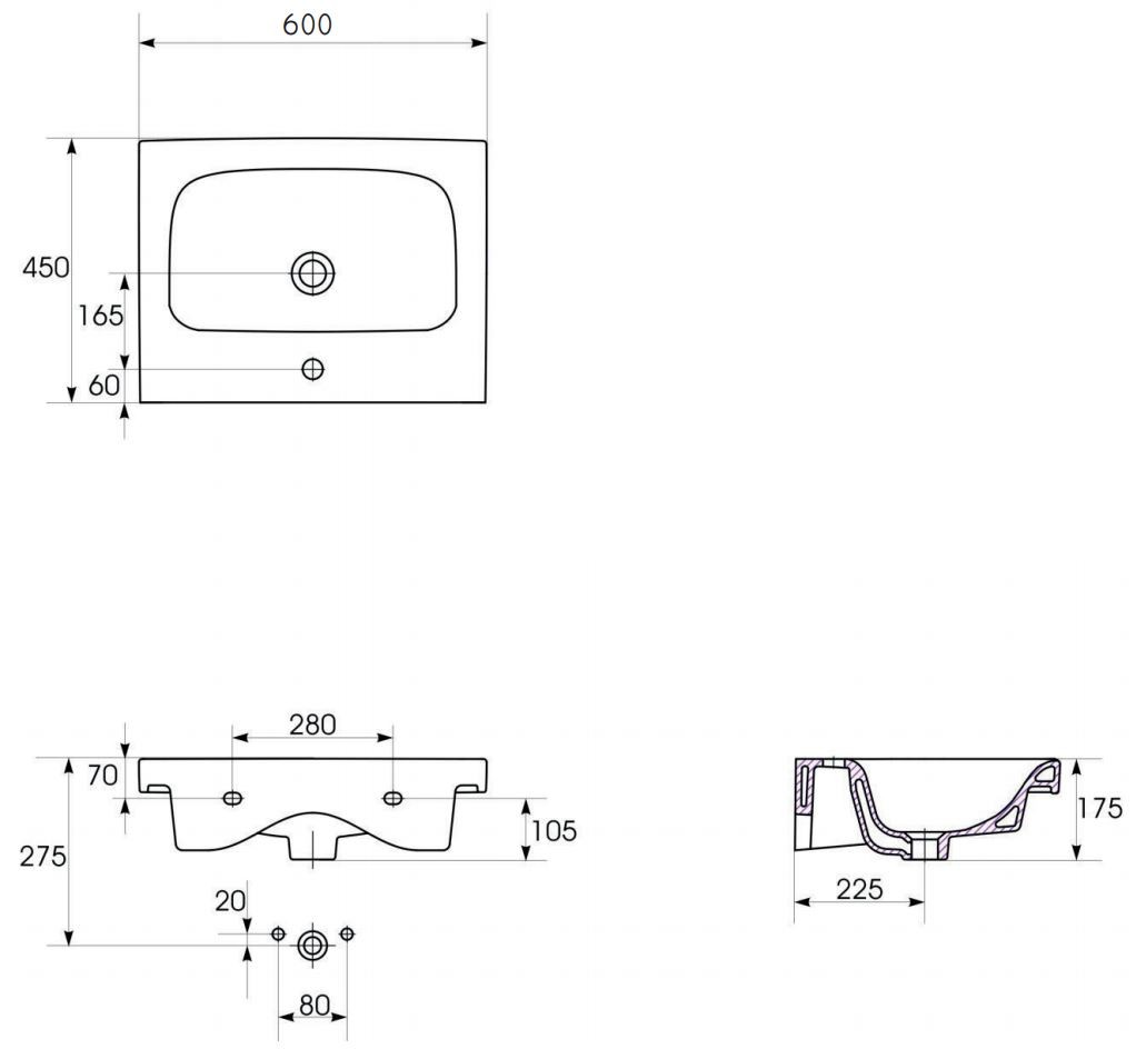 Nábytkové keramické umývadlo MODUO 60 s prepadom a jedným stredovým otvorom pre batériu. Možno inštalovať len na stenu s ozdobným sifónom alebo kombinovať so skrinkami radi MODUO, STILLE, CITY, COLOR, LARA, CREA, SMART.
