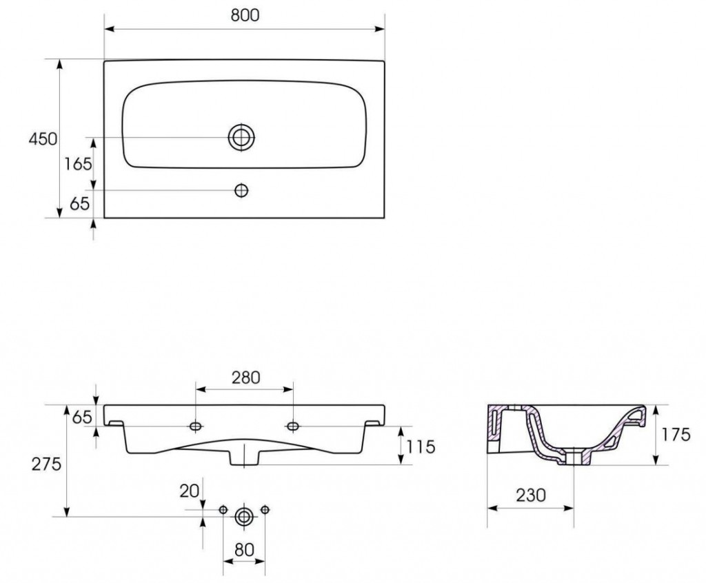 Nábytkové keramické umývadlo MODUO 80 s prepadom a jedným stredovým otvorom pre batériu. Možno inštalovať len na stenu s ozdobným sifónom alebo kombinovať so skrinkami radi MODUO v bielom alebo šedom prevedení.