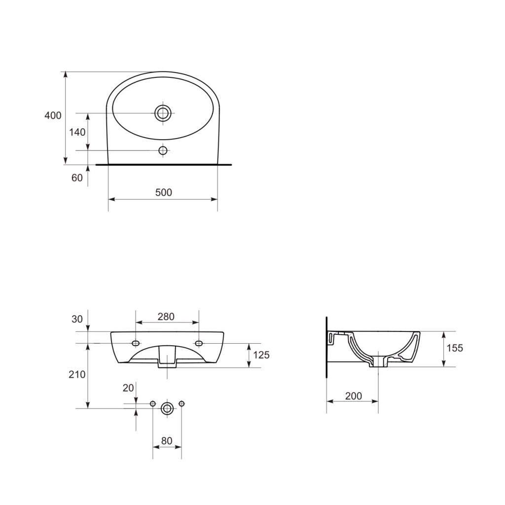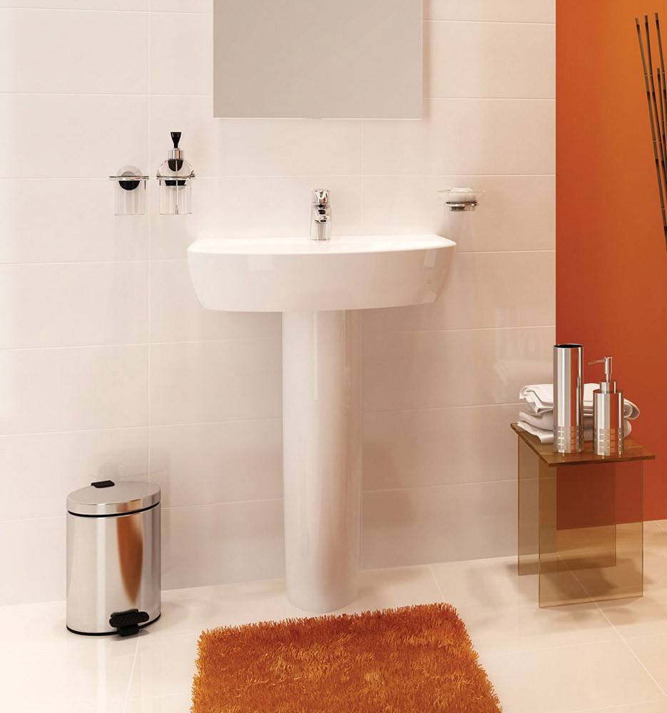 Závesné umývadlo Parva bielej farby s otvorom pre armatúru ideálne pre malé kúpeľne. Montáž k stene s chrómovým sifónom, polostĺpom či stĺpom.