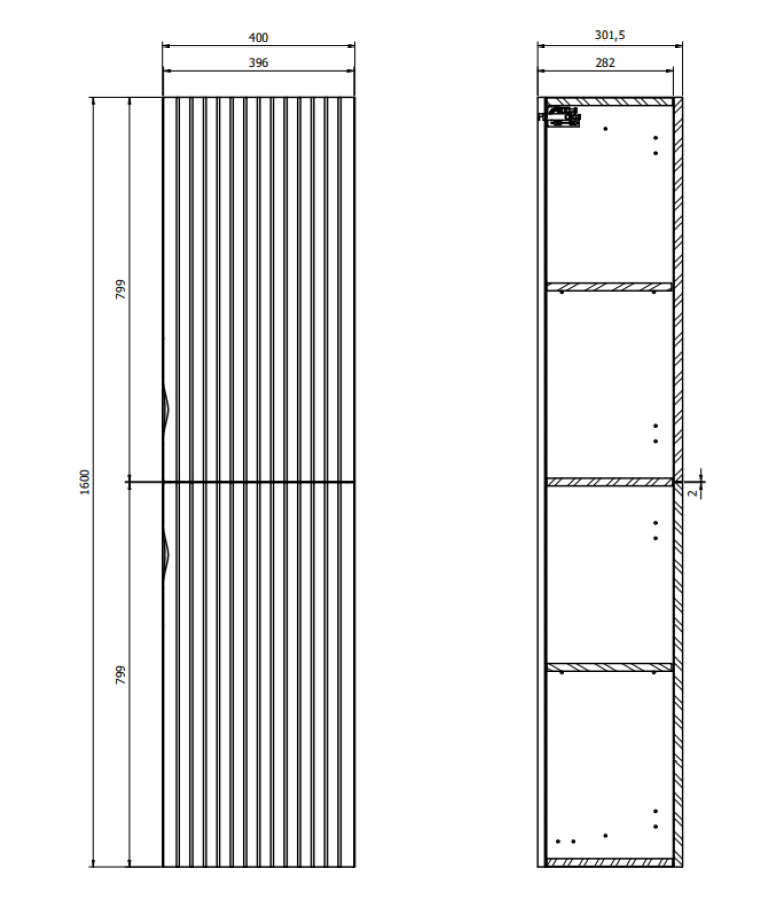 Prídavný stĺpik série TIRSO má frézované dvierka a systémom tichého dovierania. Je vyrobený z 16 mm drevotrieskovej dosky a dodávaný s oceľovými úchytkami vo farebnom prevedení chróm a čierna mat.