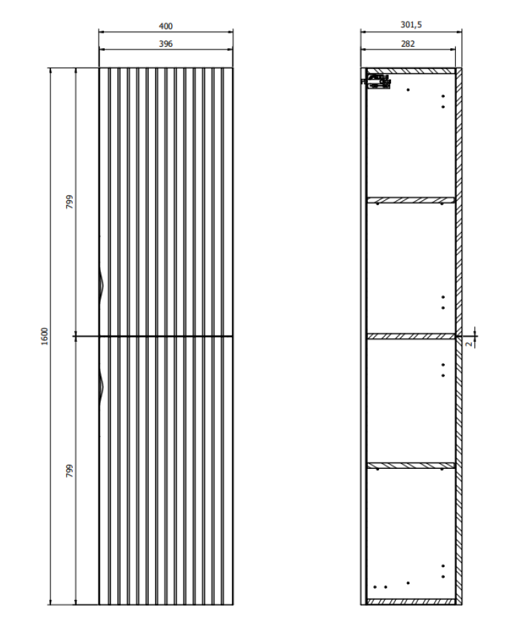 Prídavný stĺpik série TIRSO má frézované dvierka a systémom tichého dovierania. Je vyrobený z 16 mm drevotrieskovej dosky a dodávaný s oceľovými úchytkami vo farebnom prevedení chróm a čierna mat.