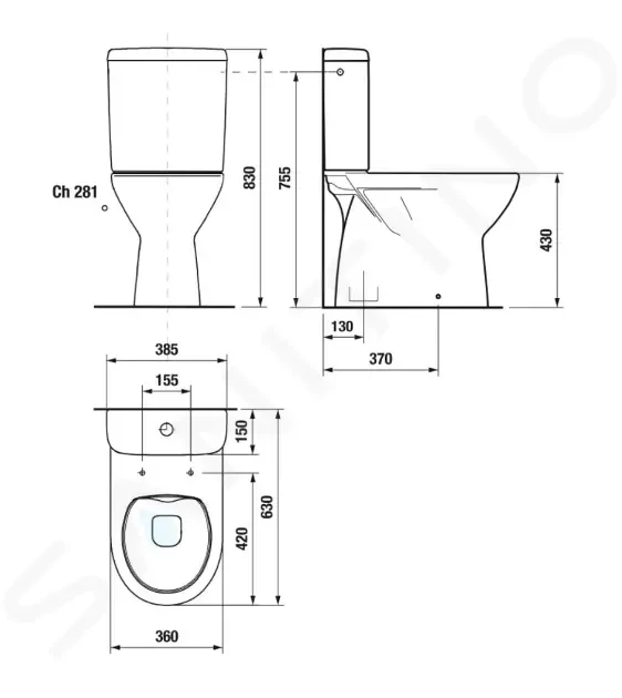 WC sedadlo a splachovacia nádržka nie sú súčasťou dodávky, je potrebné objednať zvlášť. (viď. súvisiace výrobky)