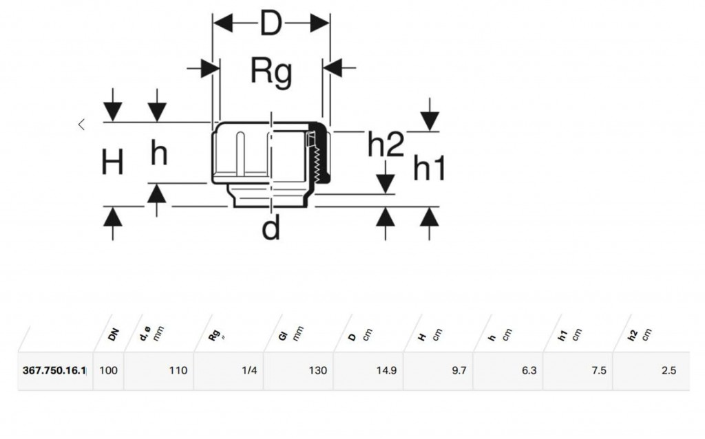 Závitový nátrubok Geberit PE s uzatváracím vekom