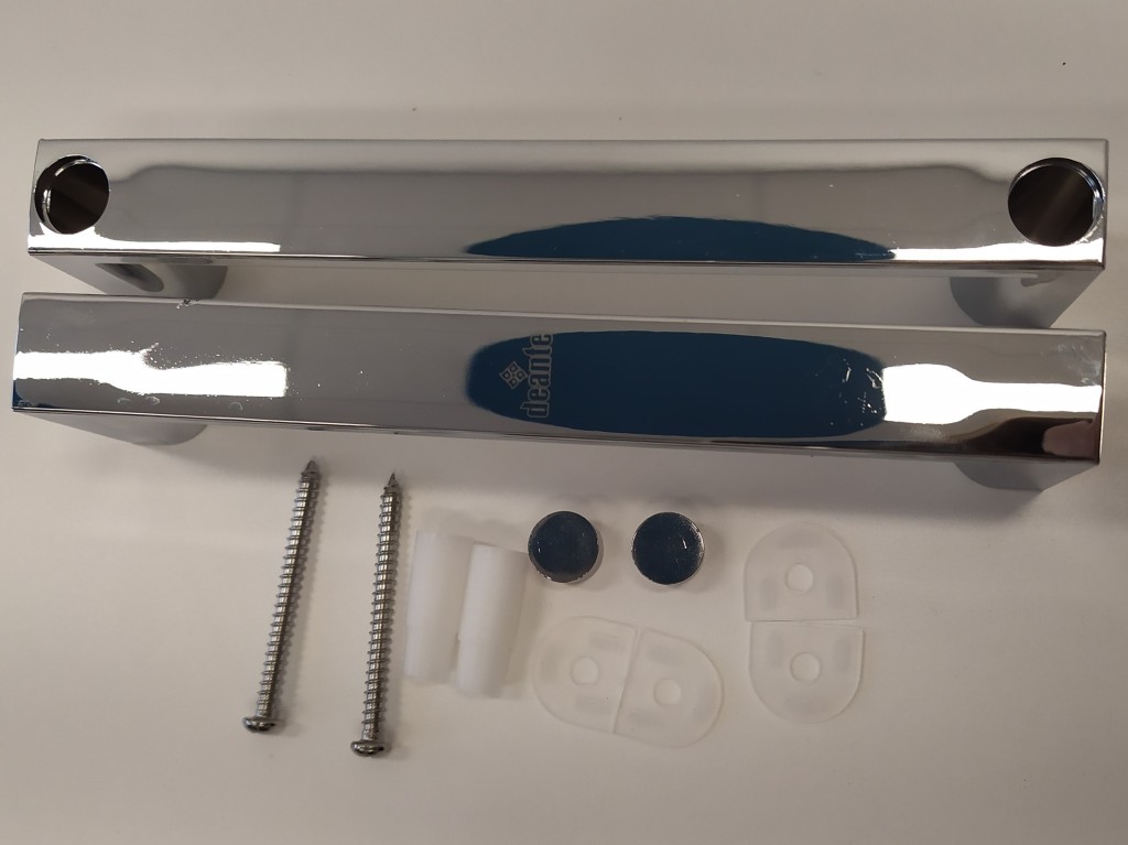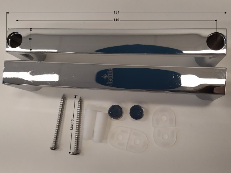 Súprava náhradných úchytov pre sprchové dvere predstavuje praktické a štýlové riešenie pre obnovu alebo výmenu opotrebovaných madiel. Úchyty disponujú montážnymi otvormi s priemerom 4 mm s rozstupom 140 mm, čo zaisťuje jednoduchú inštaláciu na väčšinu štandardných sprchových dverí.