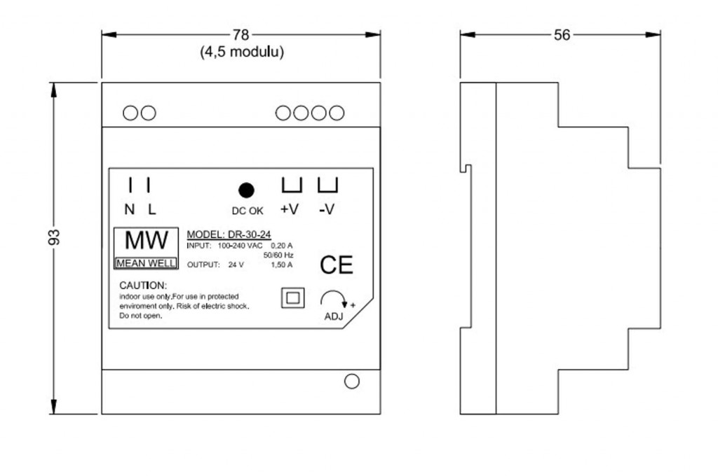 Zdroj je určený pre pripevnenie na DIN lištu.