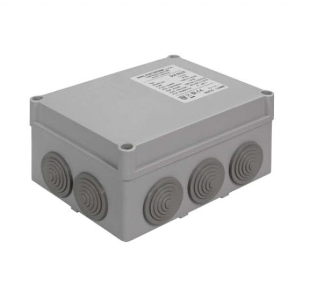 - výstup z vstavaného zdroja je tvorený dvojlinkou, ktorá sa pripojí ku svorkám elektroniky, prívodný kábel s napätím 230 V / 50 Hz sa do montážnej krabice privedie pomocou priechodky