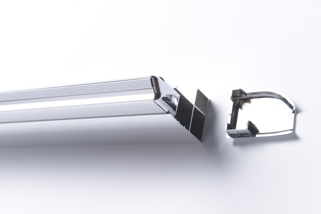 Chrómová vzpera je možné inštalovať do sprchového kúta, ale aj z vonkajšej strany, tá potom poslúži aj ako praktický držiak uterákov.