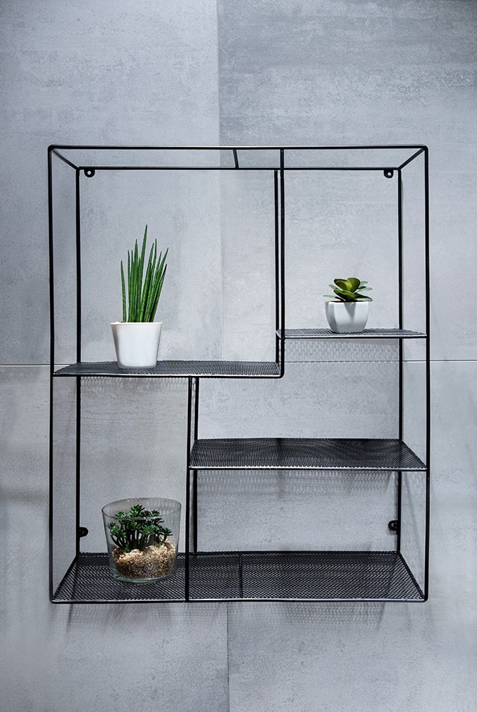 Nástenná hranatá drôtená polička vyrobená z kvalitnej ocele a lakovaná do čiernej farby . Obdĺžniková polička obsahuje celkom 3 rovné, odkladacie plochy . Na inštaláciu je nutnosťou vŕtanie do stien.
