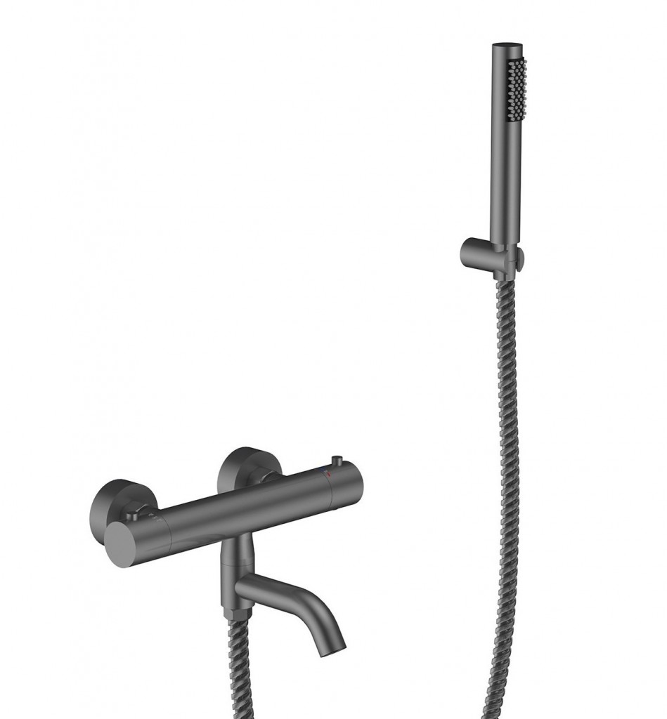 Jedinečný nástenný sprchový aj vaňový termostatický set s príslušenstvom VEO grafitová farba . Kompletné riešenie pre vašu kúpeľňu. Set obsahuje termostatickú batériu, vývod zo steny s držiakom, ručnú sprchu a hadicu . Dodávame v štyroch farbách a to lesklý chróm , čierna, grafitová alebo zlatá.