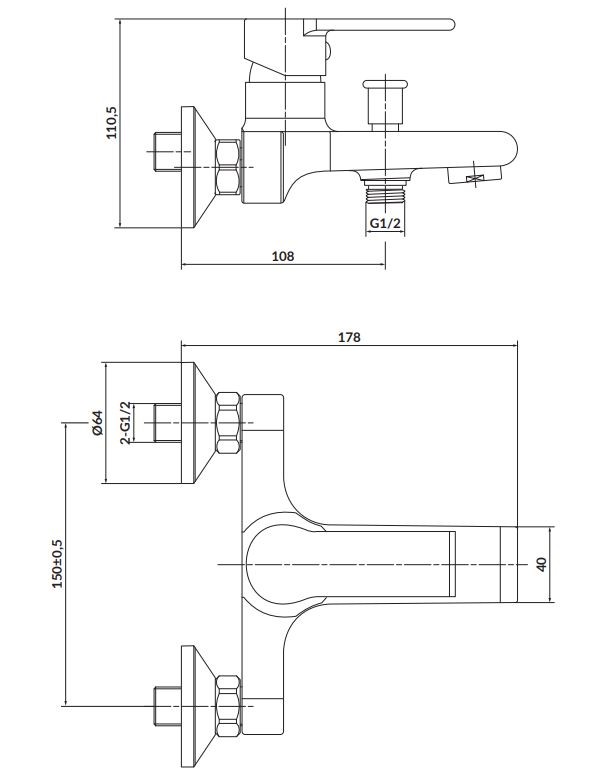 Nástenná vaňová batéria Brasco, páková, chróm (S951-229)