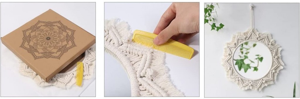 POZNÁMKA: Pred zavesením vyčešte strapce. Rám zrkadla je zhotovený z prírodných vlákien vysokej kvality, zaručujúce mu krásnu a neopakovateľnú textúru a vlastný jedinečný charakter. Je ideálny pre každú miestnosť; do obývacej izby, kúpeľne, kuchyne, predsiene, chodby, terasy či altánku - všade tam, kde snívate o výnimočnom štýle Boho. Ručne tkaný rám zrkadla okrem štýlového riešenia ponúka aj odvážnu kombináciu pozornosť priťahujúcich farieb a tradičného remesla.