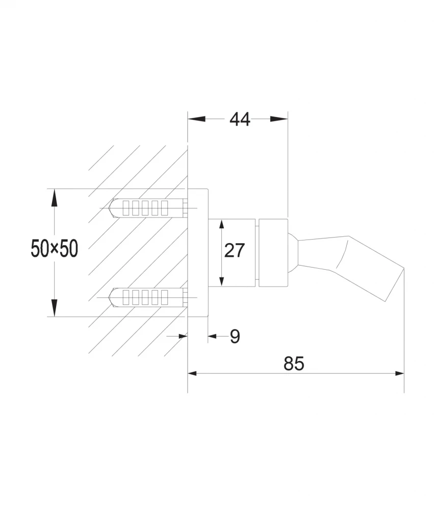 Nástenný pohyblivý mosadzný držiak ručnej sprchy hranatého tvaru.