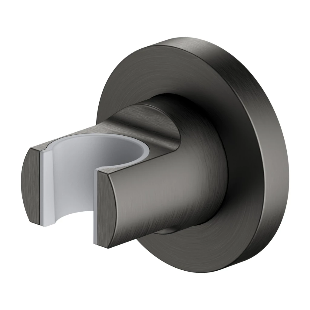 Mosadzný držiak ručnej sprchy okrúhleho tvaru.