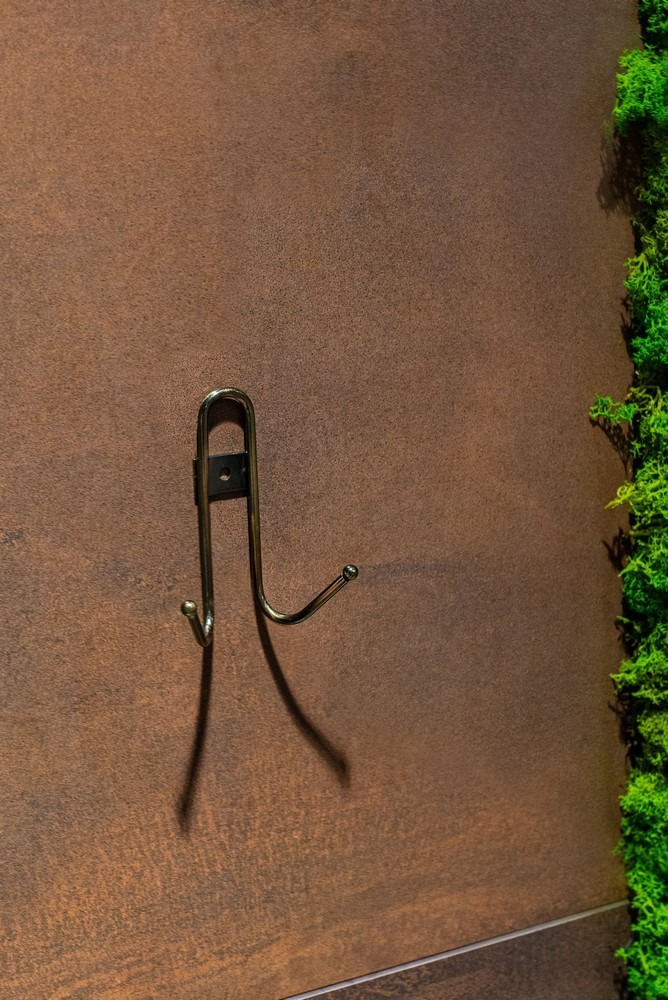 Zlatý nástenný háčik s dvoma háčikmi na zavesenie uterákov, županov alebo oblečenia Bol precízne vyrobený z pevnej a masívnej ocele lakovanej vo farbe antického zlata. Je to perfektný doplnok do kúpeľne v rustikálnom, vintage alebo retro štýle.