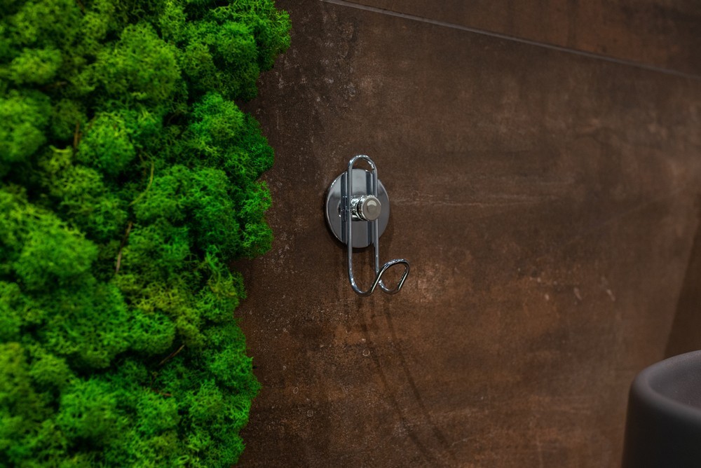 Nástenný samolepiaci háčik sa ľahko namontuje na 3M lepiacu pásku. Jeho nosnosť je až 4 kg. Má jeden široký háčik na zavesenie.