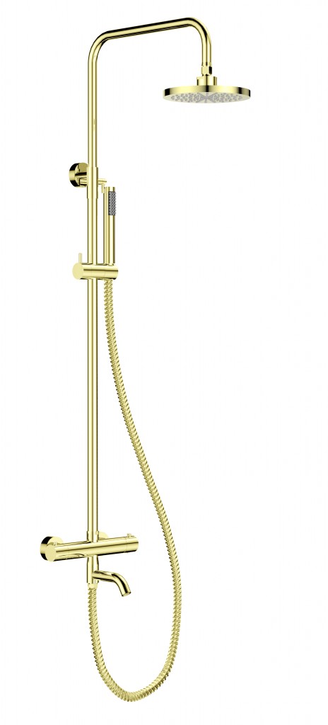 Jedinečný nástenný sprchový a vaňový set s príslušenstvom VEO v zlatej lesklej farbe . Kompletné riešenie pre vašu kúpeľňu. Set obsahuje termostatickú batériu, hlavovú sprchu s držiakom, ručnú sprchu, hadicu a veľmi praktické otočné výtokové ramienko . Dodávame v piatich farbách a to lesklý chróm , čierna, grafitová, zlatá alebo zlatá lesklá.