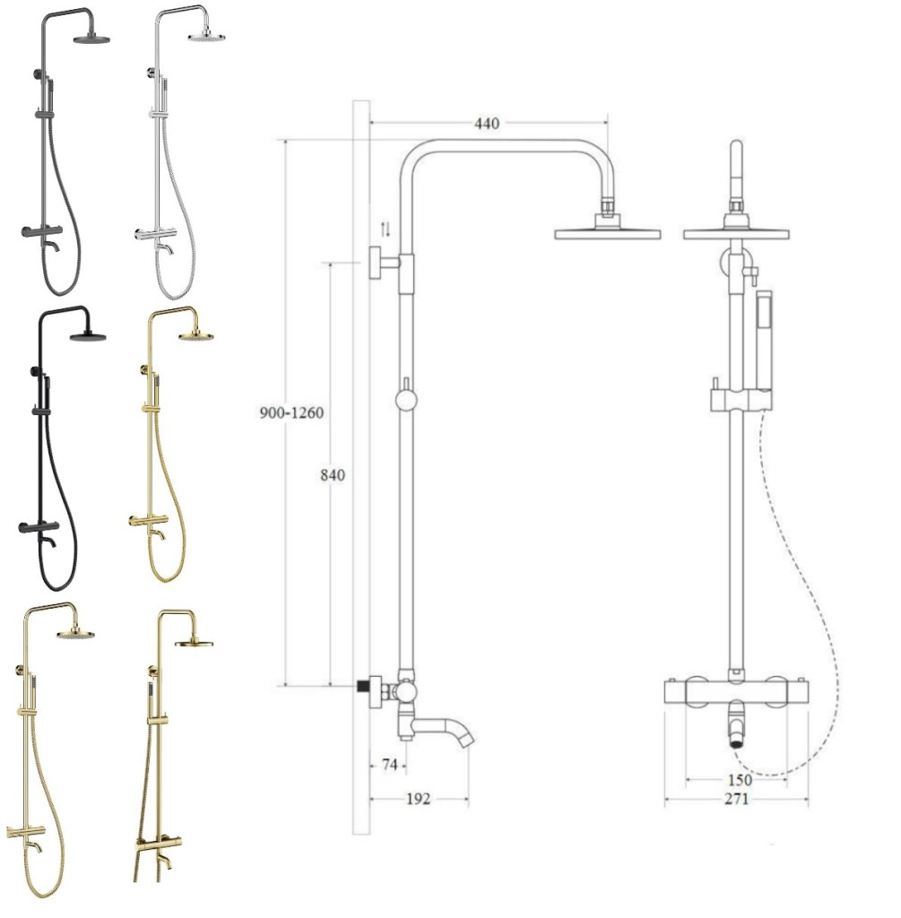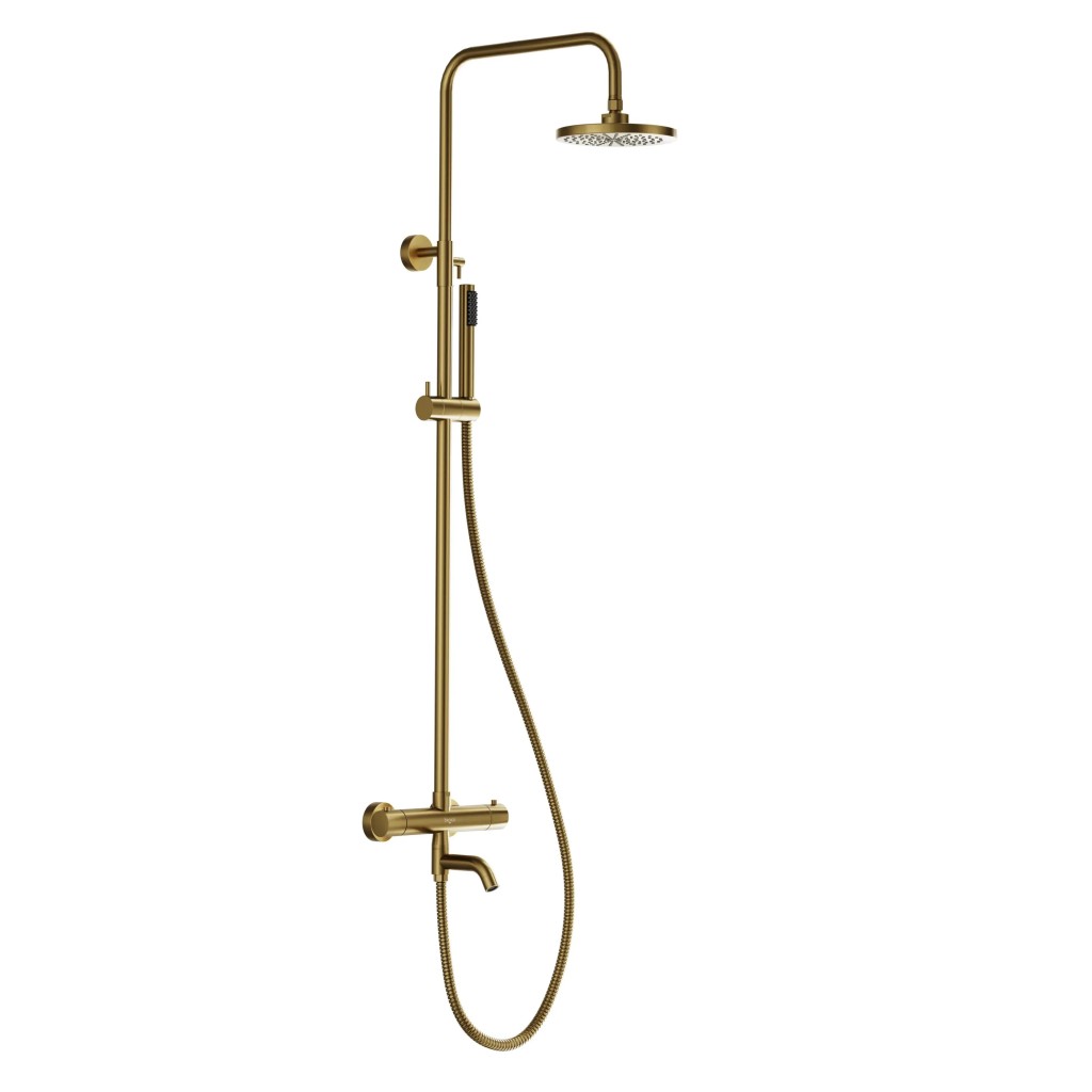 Prednosti termostatického nástenného sprchového setu VEO zlatá lesklá farba:- Farba : zlatá brúsená farba