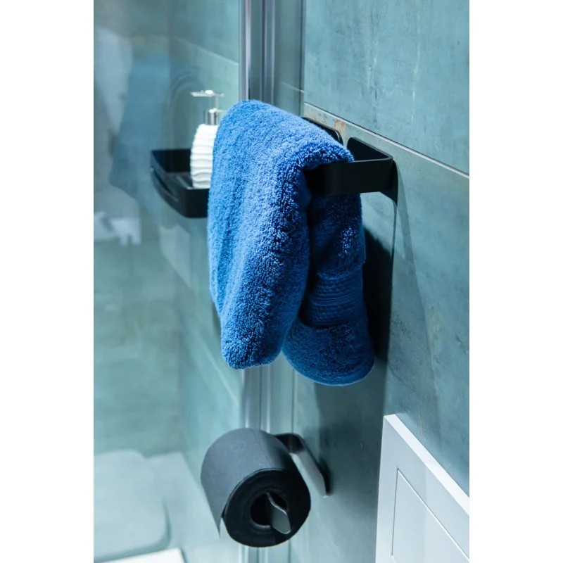 Minimalistický a moderný nástenný vešiak plochého profilu typu. Je vyrobený z hliníka lakovaného matnou čiernou farbou . Inštalácia sa vykonáva na samolepiacu pásku 3M s vysokou lepiacou silou. Vešiak na uteráky má maximálnu nosnosť 2 kg.