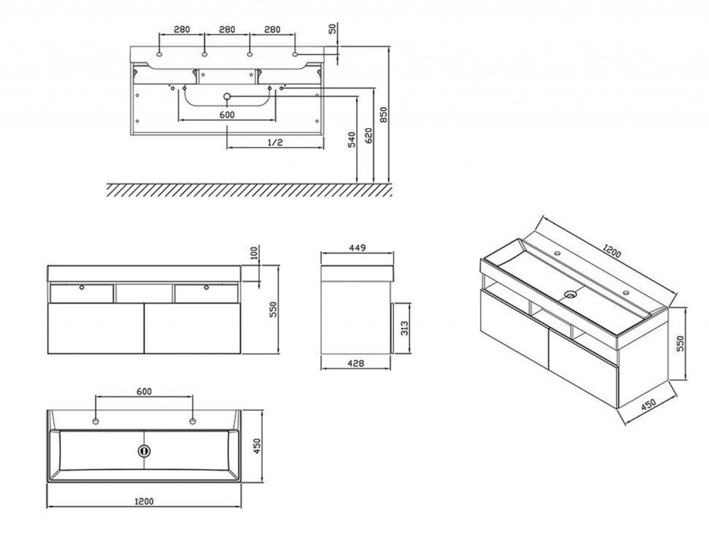 - rozmery: 1200 x 450 x 450 mm