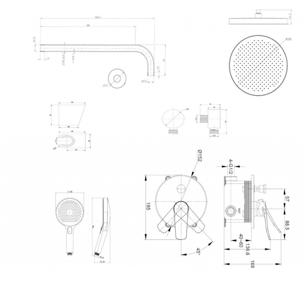 - priemer sprchy 320 mm