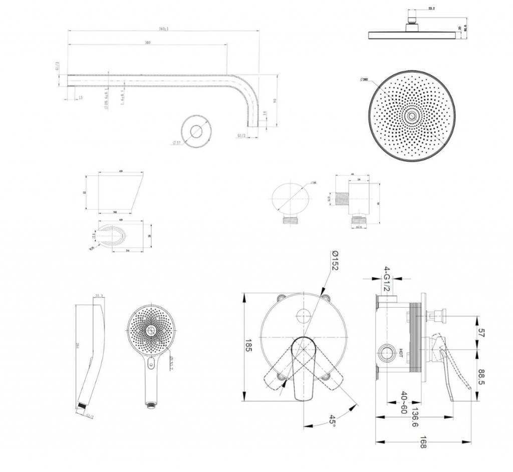 - priemer sprchy 260 mm
