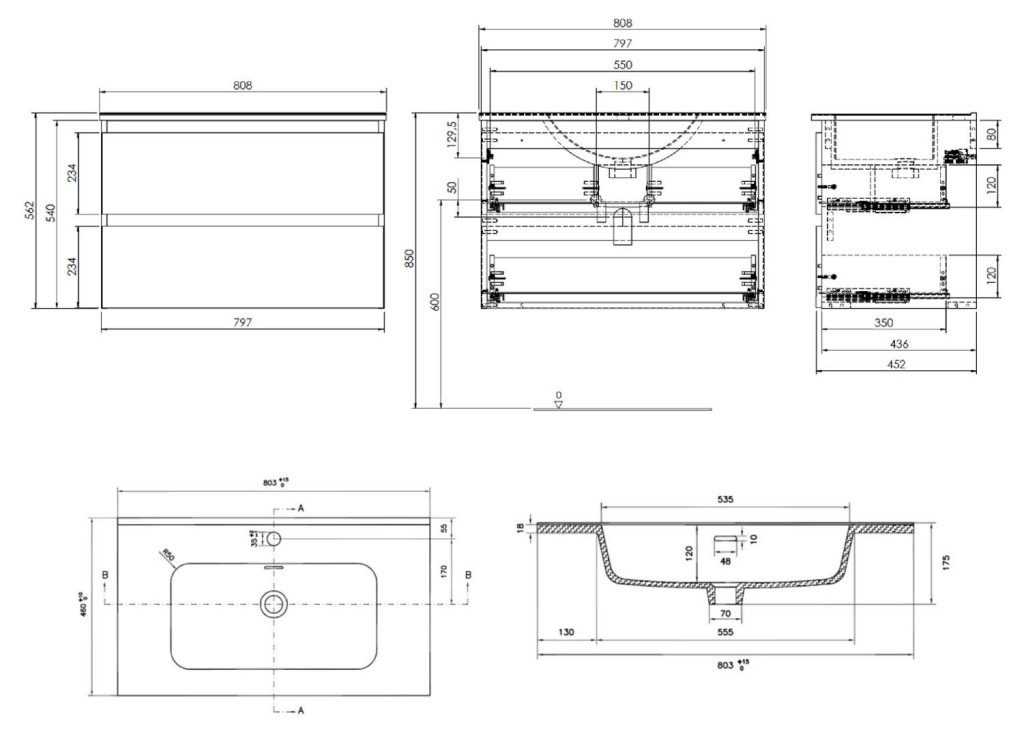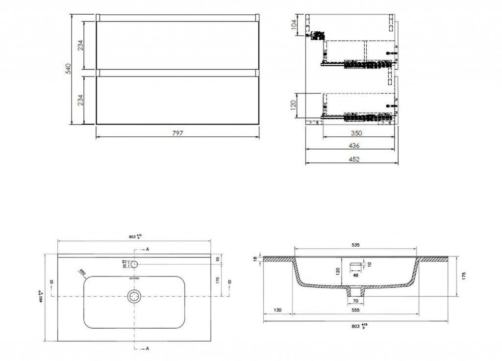 - rozmery skrinky: šírka 800 mm, hĺbka 460 mm