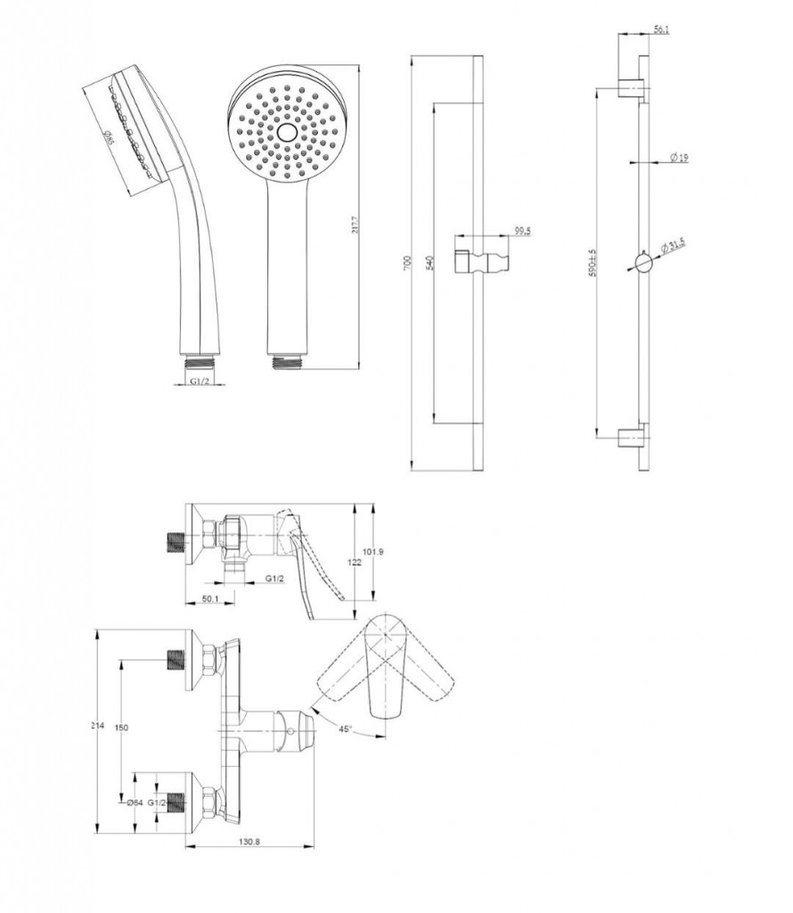 sprchová tyč 700 mm