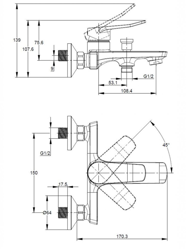 Nástenná páková vaňová batéria