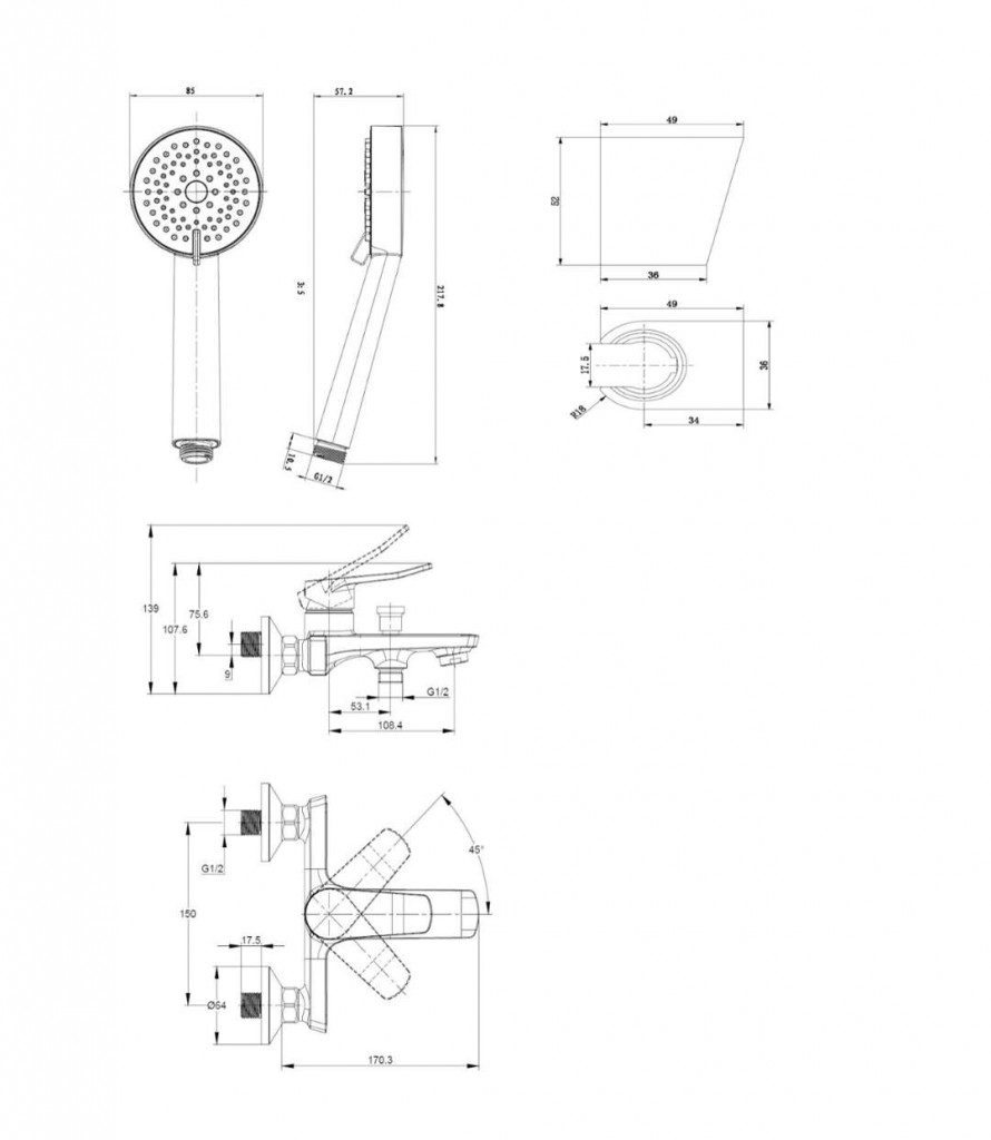 nástenný držiak sprchy