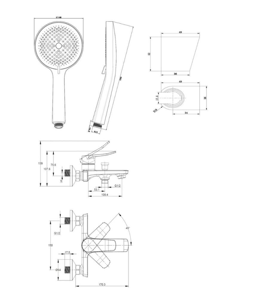 nástenný držiak sprchy