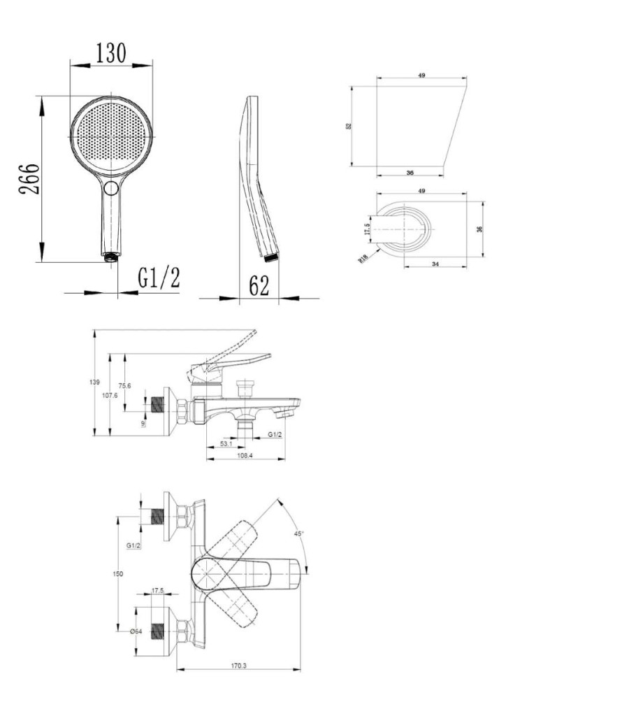 nástenný držiak sprchy
