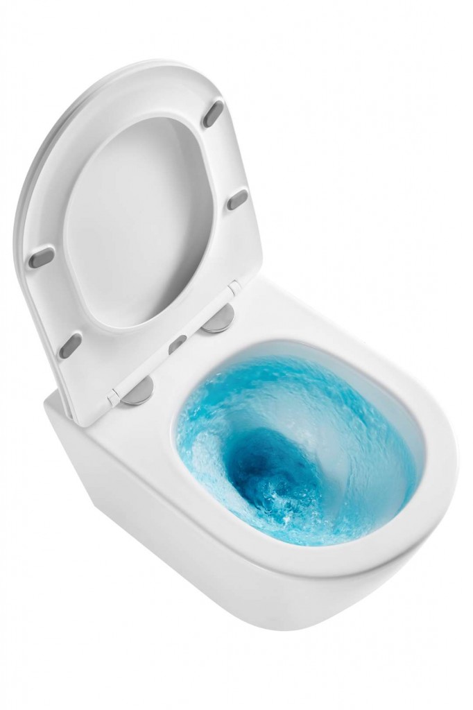 - Vortex Rimless+ inovatívne splachovanie pomocou vodného víru, ktoré zaisťuje dokonalé očistenie toalety